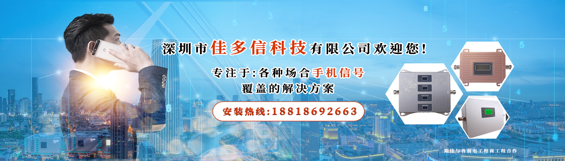 ? ? ? ? 深圳市佳多信科技有限公司、坐落于廣東省深圳市龍崗區(qū)龍崗中心城、自2013年成立至今、已發(fā)展成為一家集移動通信網(wǎng)絡(luò)信號覆蓋工程專業(yè)團隊、適用于各種場合包括廠房、辦公場所、地下車庫、娛樂場所、電梯、別墅、隧道、山區(qū)等...手機信號放大室分覆蓋工程服務(wù)商!